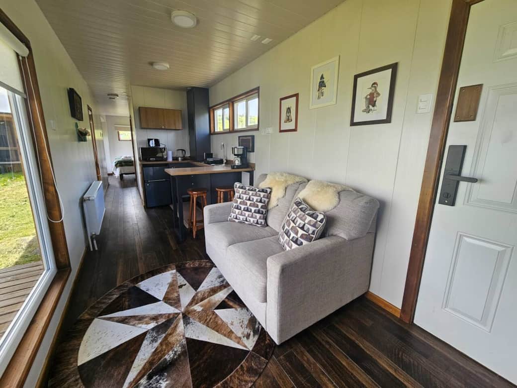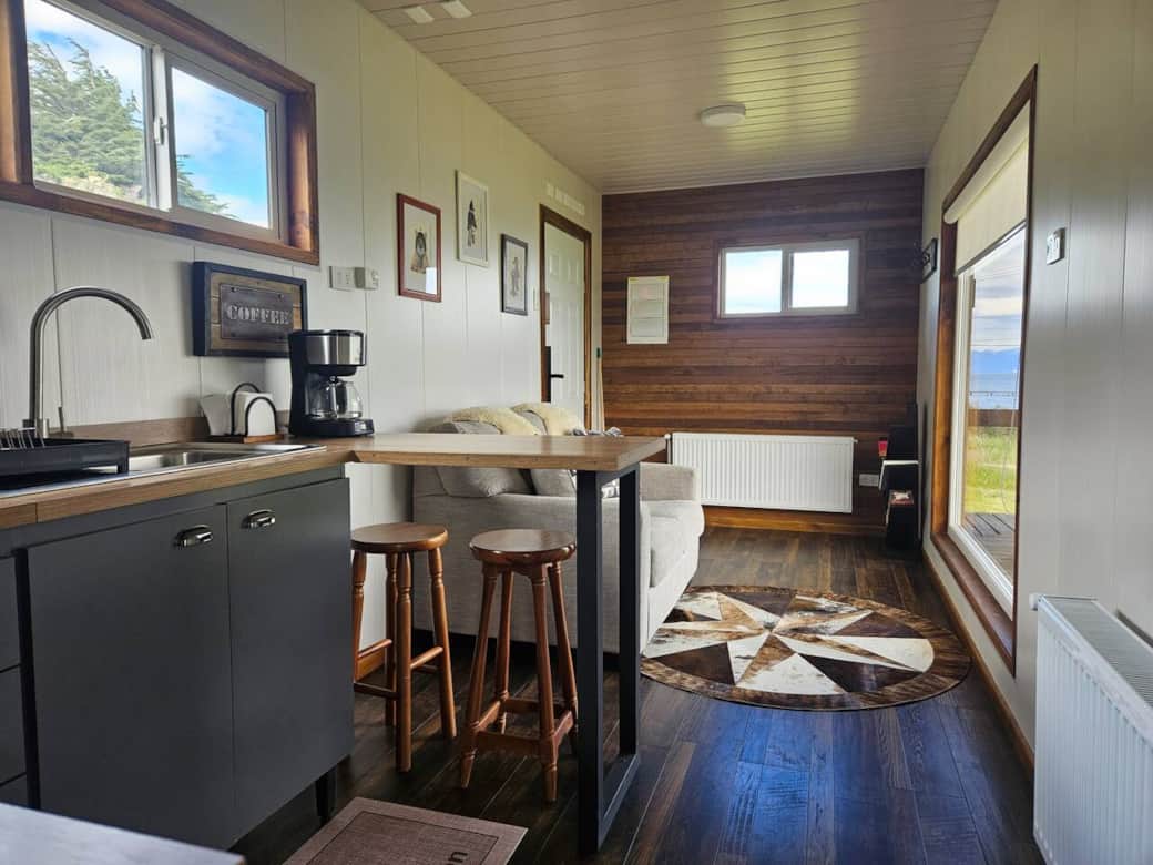 Relax in this peaceful space with an incredible view of the sea and the mountains. You’ll enjoy a spacious property located very close to town—just 5 km from the airport and right on the waterfront of Puerto Natales.
